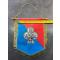 Fanion ancien double-face : insigne du 35e RI au recto, campagnes historiques (Wagram, Moscowa, Verdun, Résistance 1944...) au verso. Avec franges dorées et cordon de suspension.