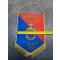 Au centre, l'insigne héraldique de l'unité présentant un heaume de chevalier surmontant un écu aux fleurs de lys et bandes rouges.