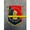 Au centre, l'insigne brodé du régiment représentant la cathédrale de Strasbourg (symbole de son attache historique à l'Alsace) surmontant deux canons croisés et le chiffre "12".