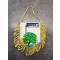 Fanion recto-verso en tissu avec franges dorées et cordon de suspension.