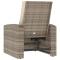 Fauteuil inclinable de jardin avec coussins marron clair rotinProfitez d'un moment de détente dans votre espace extérieur avec ce fauteuil inclinable de jardin ! C'est un complément parfait à votre jardin et à votre terrasse, créant une impression durable ! Matériau durable : la résine tressée, également connue sous le nom de rotin poly, résiste aux intempéries et est facile à nettoyer. Elle reste belle à l'extérieur pendant une longue période. Elle est plus économique que d'autres matériaux, tout en offrant une excellente qualité, une commodité et un aspect esthétique. Fonction d'inclinaison manuelle : le fauteuil de jardin est spécialement conçu avec une fonction d'inclinaison qui vous permet de régler manuellement le dossier et le repose-pied en fonction de votre confort. Cadre robuste et stable : le cadre en acier rend le fauteuil inclinable robuste et stable pour une utilisation quotidienne à l'extérieur. Expérience d'assise confortable : le dossier et les accoudoirs ajoutent un confort d'assise supplémentaire à la chaise de détente. De plus, les coussins bien rembourrés vous permettent de vous asseoir confortablement. Remarque : Pour que vos meubles d'extérieur restent beaux, nous vous recommandons de les protéger avec une housse imperméable. Maximum 110 kg par siège. Soyez conscient du risque de feux ouverts et d'autres sources de forte chaleur à proximité du produit. ,