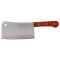Ce tranchoir à viande est lourd et en acier inoxydable avec un manche en bois.