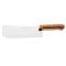 Ce tranchoir à viande est lourd et en acier inoxydable avec un manche en bois.
