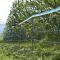 Filet monté sur 12 piquets avec pointe en acier inoxydable de maintien, avec environ 4,5 m de distance entre les piquets.