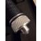 Poignée creuse enveloppée d'un cordon en nylon noir et solide, dans lequel se trouve un kit de survie, une boussole