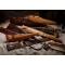 Fourreau traditionnel en cuir doublé fourrure protégeant l’arme pendant son transport ou en action de chasse.