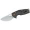 Couteau de poche Fox Suru fibre de carbone Lame en acier M390 d'une dureté Rockwell de 59-60 Hrc Lame blanche Ouverture par """"flipper"""" Manche ajouré en fibre de carbone, couleur noire Clip et visserie titanium bronze Dimensions : Longueur de Lame : 6 cm Longueur totale : 14,8 cm Epaisseur de lame : 4 mm Poids : 58 g