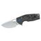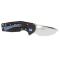 Couteau de poche Fox Suru fibre de carbone Lame en acier M390 d'une dureté Rockwell de 59-60 Hrc Lame blanche Ouverture par """"flipper"""" Manche ajouré en fibre de carbone, couleur noire Clip et visserie bleu titanium Dimensions : Longueur de Lame : 6 cm Longueur totale : 14,8 cm Epaisseur de lame : 4 mm Poids : 58 g