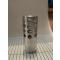 Frein de bouche brut d'usinage en alliage aérospatial ( 20 g) . Frein de bouche ayant subi un problème de desserrage lors de l'usinage des trous, ils ne sont de ce fait pas bien aligner car la pièce a bougée .