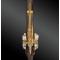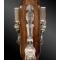 Garde découpée en forme de vase antique flamboyant, pontet décoré d'une feuille d'acanthe. Plaque de couche en fer, légèrement gravée. Baguette en fanon de baleine avec tête en os.