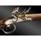 Platines à silex en fer à corps bombés, soulignées sur tout le pourtour, marquées" Le Page à Paris"sur les deux faces. Chien rond en fer « à col de cygne ». Bassinets ovales en fer, à fonds d’or, avec pare étincelles, ressorts de batteries à galet.Lumières à l’or.