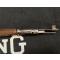 Cette arme d'occasion, avec son bois de noyer sombre à patine homogène et son canon brillant, quasi-miroir aux rayures franches, est équipée d'une sangle en cuir d'époque.
