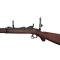 Arme à canon rayé à chargement par la culasse par portière articulée fabriquée spécifiquement pour le tir à longue distance.Ce Springfield Trapdoor est doté d'un sabot en bois amovible formant poignée pistolet, pour améliorer la stabilité au tir.Chien externe, hausse type Vernier rabattable, guidon sous tunnel, 2 bandes acier.Calibre . 45-70 - canon à 6 rayures au pas de 1:18'' soit 460 mm