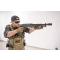 Il est équipé d'un bouton poussoir de sécurité, et d'un rail picatinny pour installer tout organe de visée ou d'éclairage.