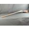 Fusil à broche juxtaposé d'artisan français en état moyen, le mécanisme d'ouverture et les platines fonctionnent très bien. Le chien gauche est fêlé, le droit a été ressoudé, il manque les deux crêtes de chien et la grenadière avant. Crosse anglaise avec un joli bois, elle a été cassé et réparé par une greffe ancienne au niveau de l'avant de la platine droite. Fermeture à T Béranger, la clé a également été ressoudé. Intérieur du canon un peu piqué, extérieur en bon état avec un petit enfoncement à l'avant. Canon en damas ruban, il peut encore tirer.