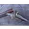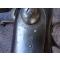 Fusil de chasse à broches calibre 16, canons en table Damas de 755 mm, ouverture par clef sous le pontet, devant articulé, chiens sur platines en arrière signées de la Manufacture Francaise d'armes de St-Etienne, détente double, crosse à l'anglaise à couche fer, usures, LT 1160 mm, n° D42, fabrication stéphanoise XIXe, catégorie D , dans une mallette en bois recouverte de toile et gainée à l'anglaise de tissus vert, 800 x 220 x 80 mm fermeture par clé.