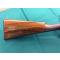 La crosse a sa configuration d'origine avec une longueur de 36,3cm terminée par une plaque de couche en corne de buffle légèrement arquée pour un meilleur épaulé. Il n'y a pas de grenadières, ce qui contribue à l'élégance de la ligne de ce fusil. Le médaillon de crosse n'a pas été gravé. La pente de crosse, assez faible, est de 50mm. Le quadrillage, fait main, est fin. Les veines du bois sont bien mises en valeur par le vernis au tampon d'origine. Les souvenirs de chasse sont visibles par les traces de coups légers.