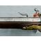 La crosse est de type « pied de vache », et le fût court s’arrête à la fin de la partie octogonale du canon. Baguette en bois. Longueur totale : 142 cm.