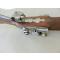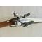 La crosse en noyer, d’une belle qualité, présente un quadrillage encore net et frais. Les garnitures en acier, finement travaillées, sont typiques du début du XIX° siècle.