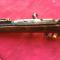 Fusil gras de cavalerie , le fut ne semble pas d'origine ou restauré car sans gravures ni chiffres, une longue micro fêlure sur le côté gauche ne gênant en rien sur sa solidité, pas de trous de vers, le canon est peau d'orange avec des cratères, surtout sur le dessous, la lame du ressort est très fine voir photo la réglette de graduation est bloquée, l'intérieur du canon aurait besoin d'un bon décapage, car on voit bien les rainures, mais le bon nettoyage s'impose, car on a l'impression que c'est une pièce de terrain hormis le fut et le reste tout en laiton et la grenadière accolée au pontet est peu d'orange et crevassée, la culasse est mono matricule et le ressort est bien dur, testé avec une douille amorcée en 8 mm Lebel car la 11 mm gras ne rentre pas et je ne possède pas de courte, et fonctionnement impeccable ainsi que l'extraction et la baguette n'est pas d'origine et joue bien son rôle, ps, la cartouche n'est pas comprise avec et sans prix de réserve.