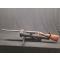 Fusil italien. L'arme n'a pas été testée au tir mais le mécanisme fonctionne à vide. Les canons sont propres et peu usés mais un coup est présent sur celui de droite. Il y a du jeu sur le bouton de sureté. La crosse est fissurée sur la droite de la bascule. Pas de jeu au basculage. Ecusson vierge sur la crosse.