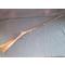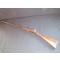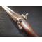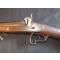 Fusil à percussion juxtaposé en calibre 16, sans signature, poinçons de Saint Etienne, en bon état. Joli canon octogonal à sa base en damas ruban dont il reste 60% de son bronzage d'origine chocolat. Crosse anglaise en état correcte, patinée avec quelques traces de manipulation. Les platines arrières fonctionnent, il manque une vis rosette sur l'un des deux chiens et l'entrée gauche de clavette ainsi que la clavette de fixation du canon. Il manque également la baguette. Les grenadières sont d'origine. Les cheminées sont présentes mais la droite est émoussée. Arme à nettoyer car sortie de grenier.