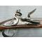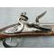 La platine, signée A Paris, est attribuée à un armurier actif sous le règne de Louis XV. Sobrement ornée de filets, elle se distingue par un bouquet floral gravé à l’arrière. Le fonctionnement est normal avec ses deux crancs qui claquent bien. La contre-platine, finement découpée, offre également un décor gravé.