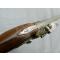 Ce long fusil à silex de 135 cm, fabriqué vers 1760, présente une crosse en pied de vache, une platine plate, un bassinet à facettes et garde-feu.
