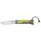 Aussi à l'aise en mer qu'en montagne ! Voile, alpinisme, canyoning, spéléo, trek, parapente... Lame acier inoxydable 12C27 modifié de Sandvik mis au point pour Opinel est réputé pour son tranchant et sa facilité d'entretien. L'acier inoxydable capable de subir le traitement thermique qui lui donne sa bonne dureté est appelé martensitique. Il a une teneur en carbone au moins égale à 0,40% ce qui permet d'obtenir un tranchant très satisfaisant sans être sensible à la corrosion. Sa lame très résistante d'une longueur de 8,5 cm et de 2,5 mm d'épaisseur est dotée d'une zone crantée de 3,5 cm, très performante pour couper sans arrachement les cordes naturelles ou synthétiques, ainsi que d'un démanilleur pour les manilles de 4 à 10 mm. Son manche est en polyamide chargé en fibre de verre qui garantit une excellente résistance aux chocs, à l'eau et aux températures extrêmes (-40° C à +80° C). Un sifflet est intégré dans le talon du manche, sans bille il fonctionne par tous temps, d'une puissance de 100 dB, il a une portée d'environ 300 m en zone dégagée. Système double sécurité Virobloc. Inventée en 1955 par Marcel Opinel, la bague de sécurité Virobloc équipe tous les couteaux fermants à partir du N° 06. Découpé dans de l'acier inoxydable, le Virobloc est constitué de deux parties : une partie fixe et une partie coulissante. Cette bague permet de bloquer la lame en position ouverte pour une sécurité d'utilisation mais également en position fermée pour une sécurité de transport.