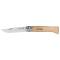 Lame acier inoxydable Sandvik de forme dite Yatagan (incurvée au niveau de la pointe) et au profil bombé qui garantissent une qualité de coupe incomparable. L'acier inoxydable Sandvik mis au point pour Opinel est réputé pour son tranchant et sa facilité d'entretien. L'acier inoxydable capable de subir le traitement thermique qui lui donne sa bonne dureté est appelé martensitique. Il a une teneur en carbone au moins égale à 0,40 % ce qui permet d'obtenir un tranchant satisfaisant sans être sensible à la corrosion. Manche hêtre vernis naturel. Système double sécurité Virobloc. Cette bague de sécurité en acier inoxydable permet de bloquer la lame en position ouverte pour une sécurité d'utilisation mais également en position fermée pour une sécurité de transport.