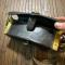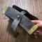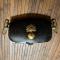 En cuir épais vernis et laiton , rajout au dos ?