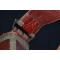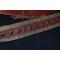 Banderolle en maroquin rouge avec galon d'argent tissé et décors de boutons en argent. Tous les éléments métalliques sont en argent massif.