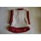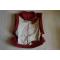 Les emmanchures, le col, et la ceinture forment bourrelets de crins recouverts de drap garance.