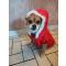 Description : Costume matelas rouge pour chien avec capuche bord blanc en peluche - fermeture à pression - chien de petite race Dimension : longueur du dos 33 cm