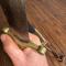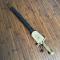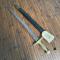 Belle état, monture en bronze , lame double tranchant sans piqûre ni aucun jeu , fourreau en cuir en belle état également, deux garnitures laiton et patte en cuir de buffle blanchie.