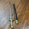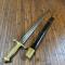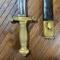Le fourreau en cuir avec un poinçon indéchiffrable "Paris ?", deux garnitures laiton, la bouterolle se termine en bouton, chape avec bouton en écusson.