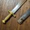 Lame avec reste de poinçons , fourreau cuir manque la bouterole et craquelures en bout , chape bien présente avec patte en cuir de buffle blanc.