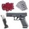 The marker easily compares to its model in caliber 9 mm Luger thanks to the CNC-milled aluminum slide (AW 7075), strong blowback, and first-class workmanship. Gen5-typical features such as the ambidextrous slide stop lever, front serrations, reversible magazine holder, and trigger safety create an authentic overall picture in terms of look and handling. For personal best performances, the polymer grip frame accommodates the original GLOCK grip backs, the sights are compatible with tuning parts from the GLOCK accessory market, and minimal manufacturing tolerances ensure a secure fit in all common holsters from Blackhawk, Safariland, GLOCK, and many more.