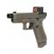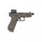 GLOCK présente ici l'édition Hunter du G45 COA spécifique par sa couleur vert olive et ses équipements: