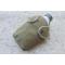 Gourde en aluminium, bouchon en matière plastique kaki, chainette solidarisée.