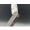 Grand couteau pliant de chasse époque premier empire ou avant, signé Mori Rue Saint Antoine pour Morize de son vrai nom, plaquettes en corne, tire bouchon au dos, ressort à mouche, lame de 22cm patinée sans oxydation corrosive, légèrement épointée. Pastilles de rivure du ressort en argent, petits trous de papillons sur la corne. Ressorts fermes, longueur totale 48cm