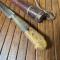 Fourreau bois habillé de cuir cousu avec anneau de port.