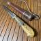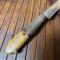 COUTEAU ORIENTAL BOUSAADI LAME forgée bien tranchant, avec gravures type signature , MANCHE CORNE BLONDE décoré de motifs.