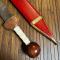 Fourreau bois recouvert de cuir rouge.