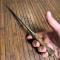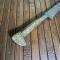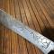 Arme richement décoré, fusée en bois habillé laiton gravée de motifs typiques et de forme zoomorphe , lame de profil yatagan à simple tranchant coupante décorée de gravures et incrusté de laiton ciselé,