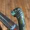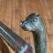 GRAND POIGNARD DE CHASSE GAUCHO À TÊTE DE CHIEN SCULPTÉ 19 ÉME .