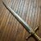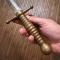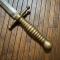 Monture en bronze massif , manche cannelée, pommeau ogival, garde à deux quillons .
