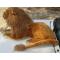 GRANDE PELUCHE LION, longueur des pattes au bout du corps 85 cm, plus la queue de 60 cm, hauteur 40 cm, trés bon état