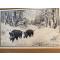 Gravure ou lithographie en noir et blanc, encadrée, œuvre de Boulet, artiste animalier, datée 12-25, en bon état, représentant deux sangliers sur chemin forestier .