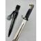 Baïonnette de parade pour fusil K98, acquise à titre privé et fabriquée par Paul Weyersberg & Co. de Solingen. Elle est dotée de plaquettes en bakélite noire quadrillée et d'une finition nickelée.